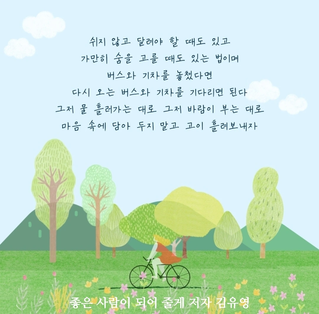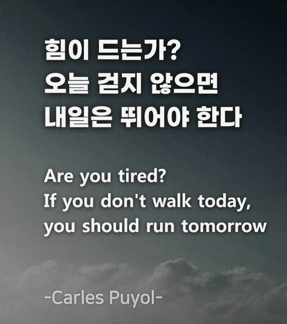 자신을 믿고 최선을 다해 긍정의 힘으로 뚜벅뚜벅 묵묵히 그리고 천천히 가보자.