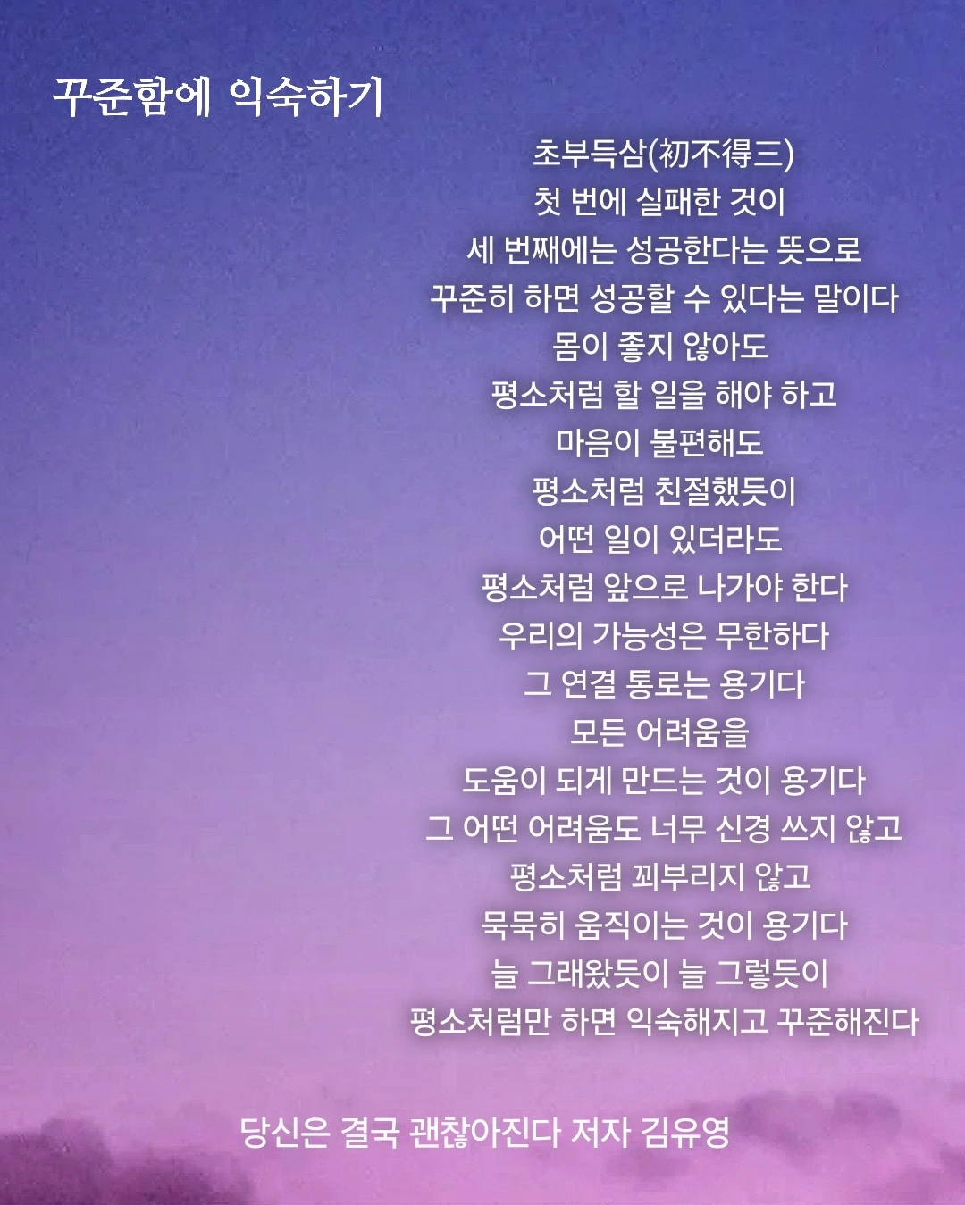 작가 겸 숨고에서 심리상담사로 활동하고 있는 긍정마법사 김유영입니다. 이곳이 지치고 힘든 당신의 마음이 잠시나마 쉬어갈 수 있는 사랑방처럼 너나들이할 수 있는 공간이기를 바랍니다.