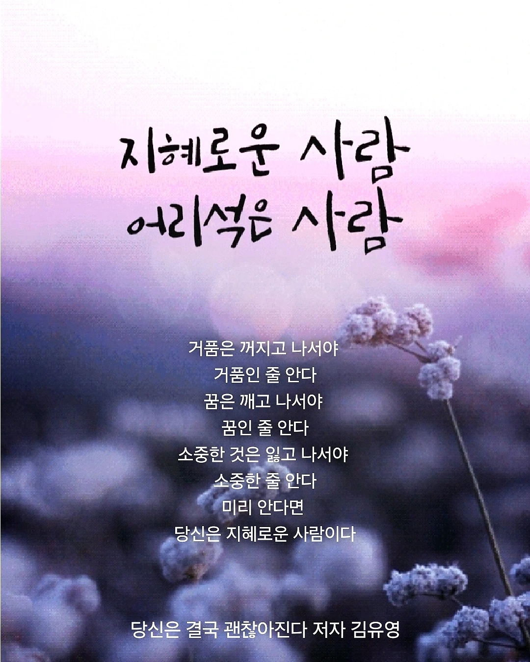 작가 겸 숨고에서 심리상담사로 활동하고 있는 긍정마법사 김유영입니다. 이곳이 지치고 힘든 당신의 마음이 잠시나마 쉬어갈 수 있는 사랑방처럼 너나들이할 수 있는 공간이기를 바랍니다.