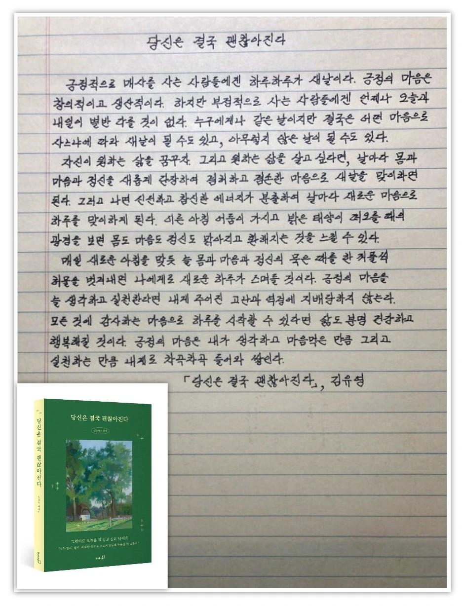 작가 겸 숨고에서 심리상담사로 활동하고 있는 긍정마법사 김유영입니다. 이곳이 지치고 힘든 당신의 마음이 잠시나마 쉬어갈 수 있는 사랑방처럼 너나들이할 수 있는 공간이기를 바랍니다.