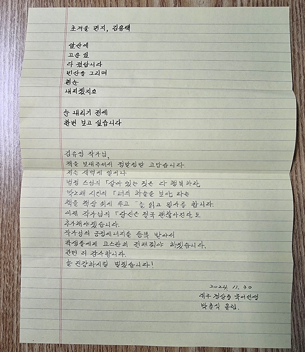 중학교 국어 선생님의 편지는