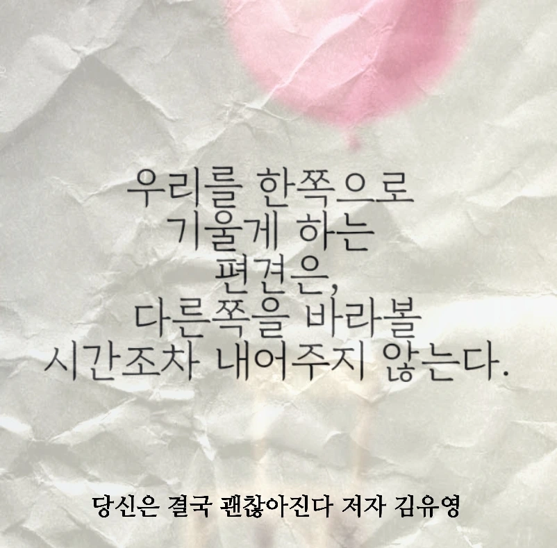 정치적 이념과 좌와 우, 장애인과 여성, 나는 맞고 너는 틀리다처럼 자기 자신만의 선입견은 없는지 섬세하게 스스로를 되돌아봐야 한다.