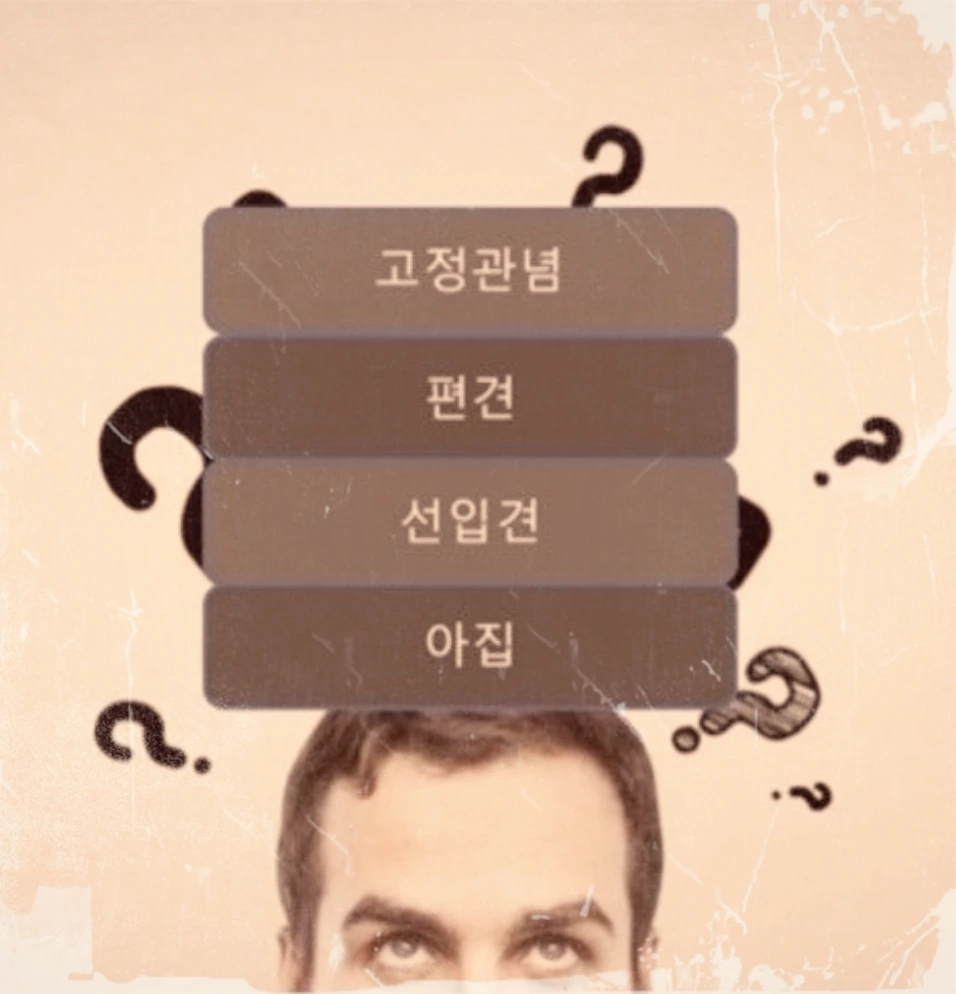 미리 보고 들은 말로 생각이 고정되어 새 의견을 받아들이지 않는 것을 선입견이라 한다.