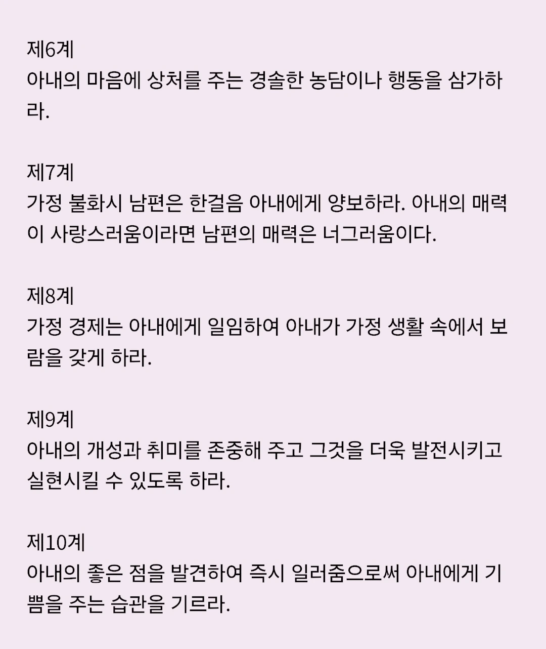 아내는 남편의 소유물이 아닌 동반자임을 명심하자.
