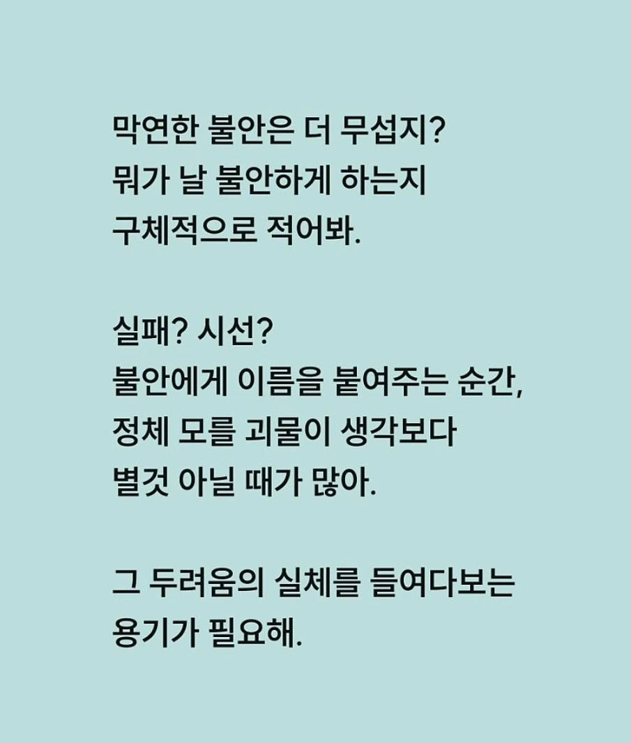 문제는 두려움이 진실인 것처럼 속삭일 때, 그 말을 그대로 믿어버리는 것이다.