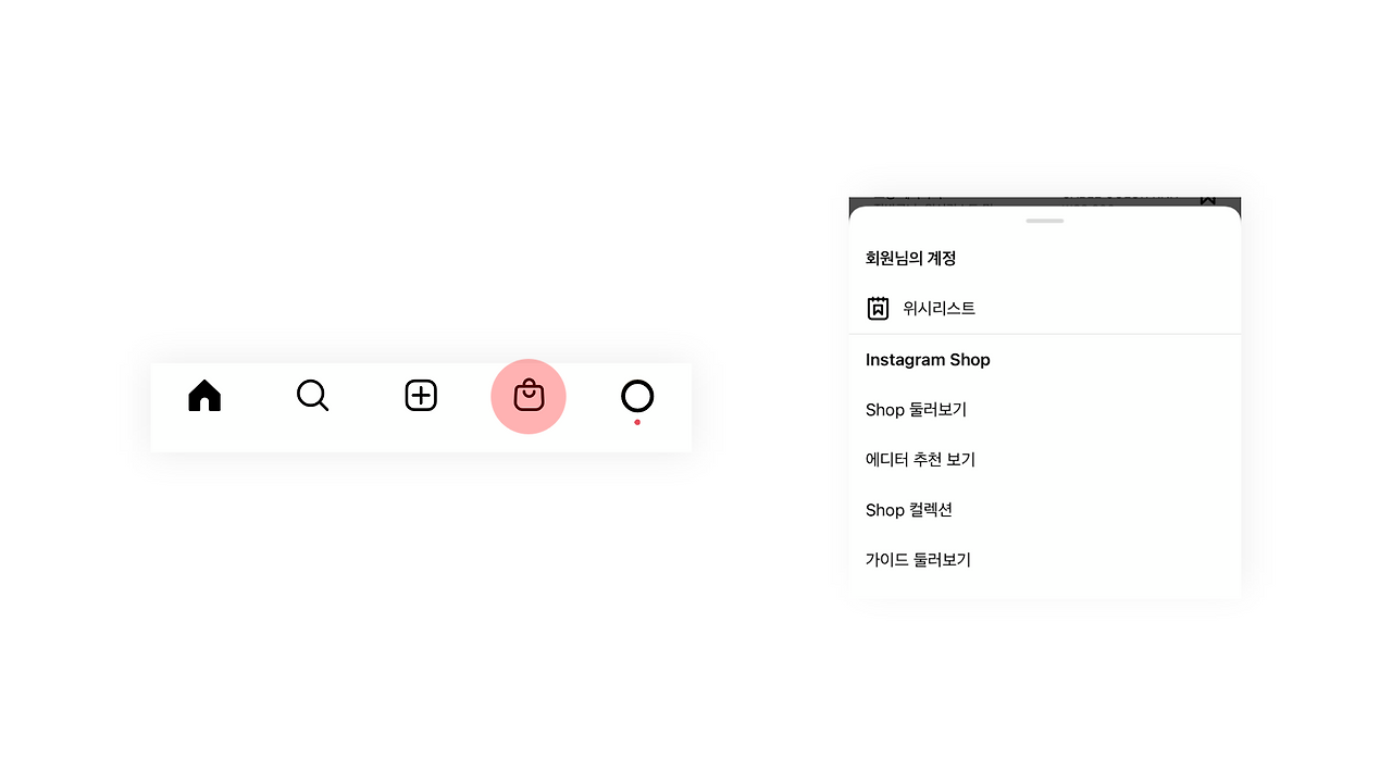 이러한 맥락에서 'shop tab' 의 신설은 주목할 만 하다. 이는 단순한 아이콘 배치가 아니라, 대다수의 사용자에게 shop 경험을 주요하게 제공하고, 행위를 유도하겠다는 선전포고이기도 하다. (이를 일각에서는 amazon사의 대응책으로 보기도 한다)