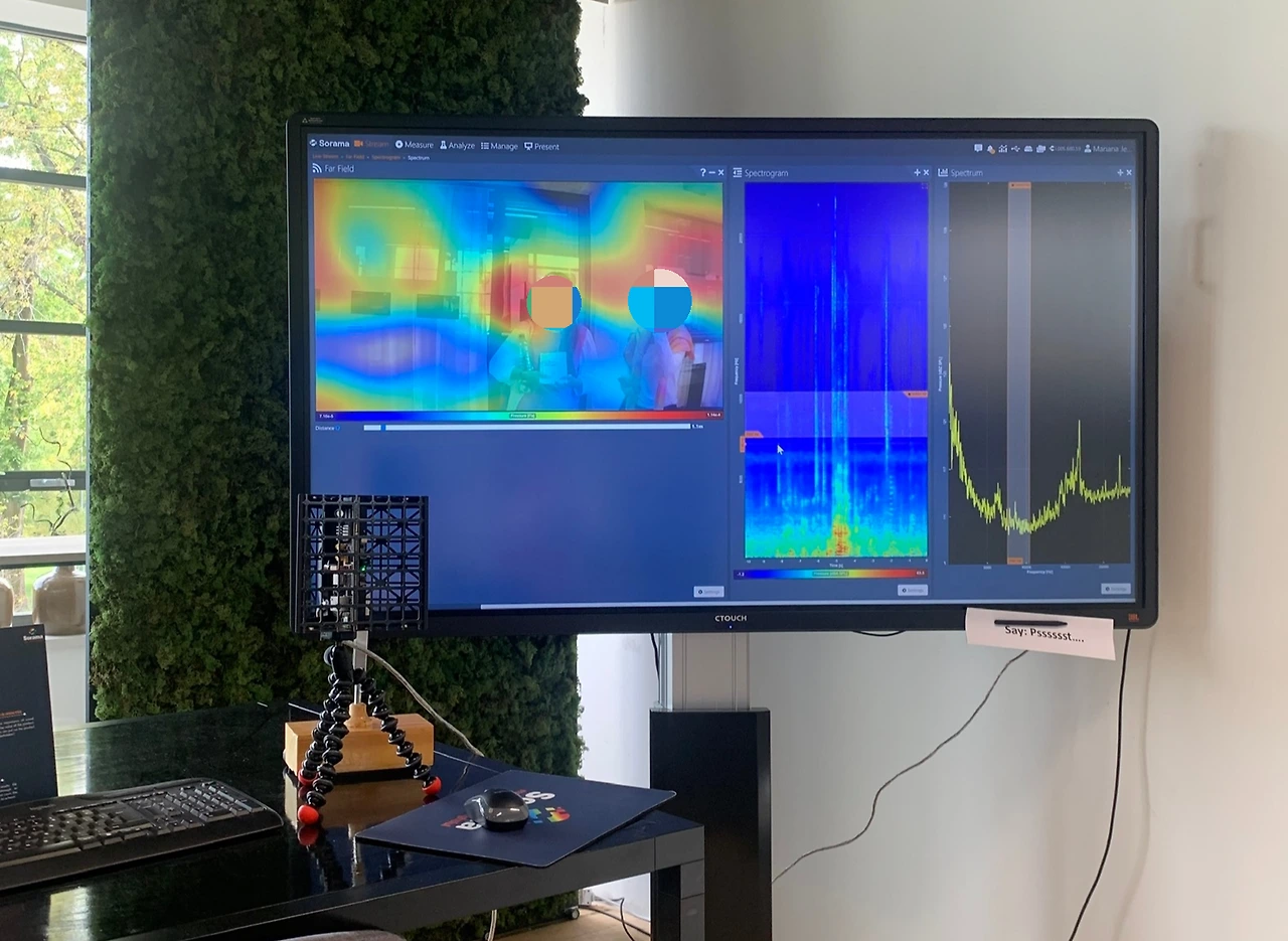 해당 사의 제품은 소리의 출처를 인식하는 input 장치로 부터 받은 정보를 색으로 표현하는 방식으로 이루어 진다. 더 쉽게 말하자면, 열화상 카메라처럼 소리가 나는 부근의 색이 붉어지는 것이다. (예를들어 카메라에 대고 말을 하면, 입 부분이 붉어지는 식.) 해당 프로덕트를 보면서 여러가지 떠오르는 시나리오들이 있었기에, 언젠가 꼭 국내에 상용화가 되면 좋겠다고 생각했다.