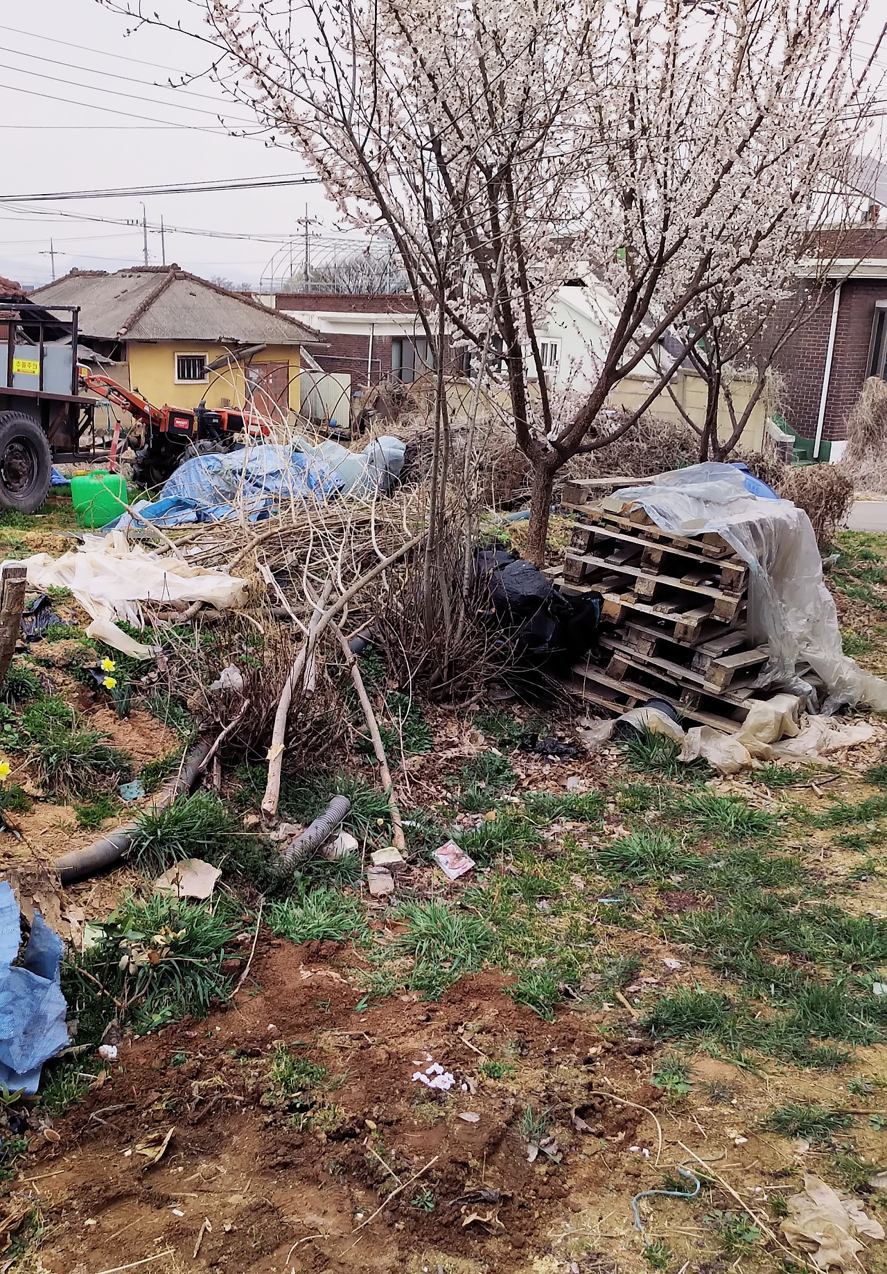 살구를 차에 태워 시골에 도착 했더니 딱꿍이가 묻힌 자리 뒷쪽에 살구나무가 있었다.