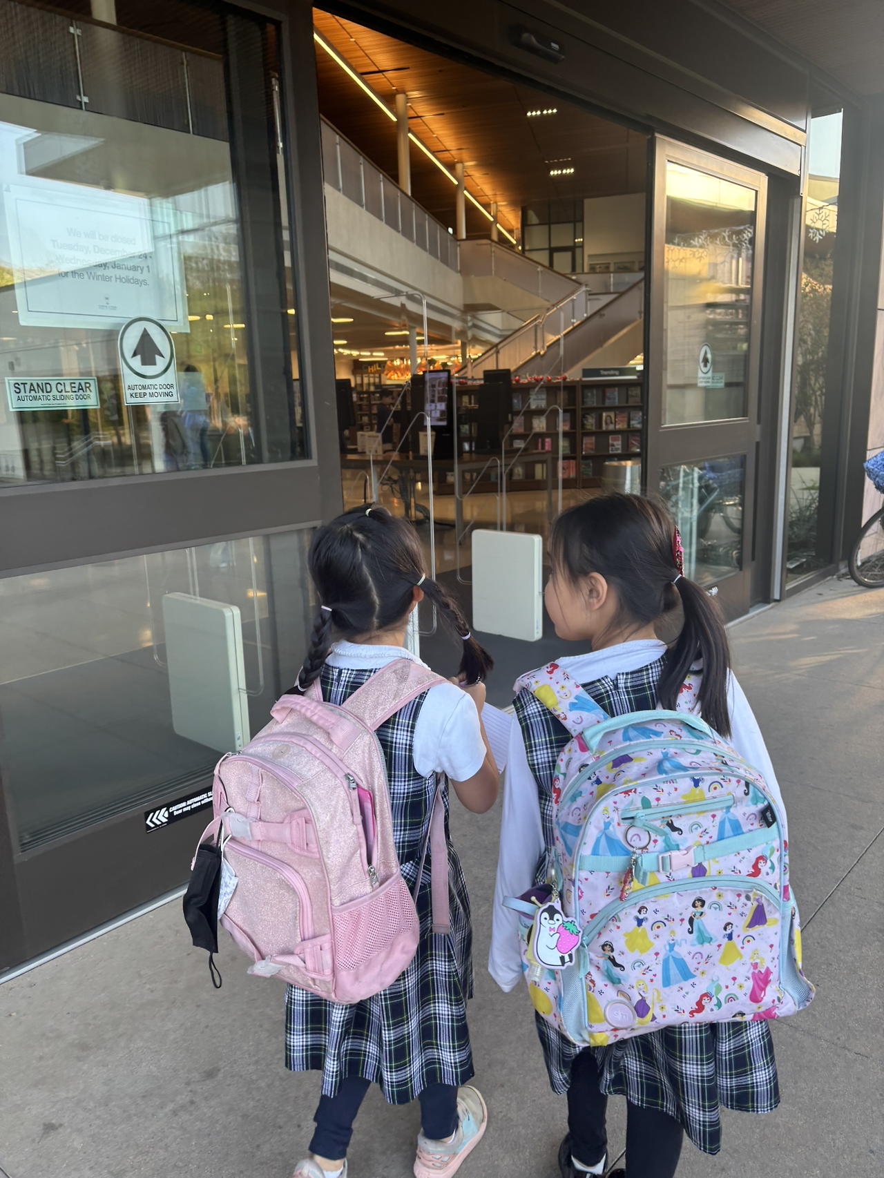 도서관 앞 잔디밭을 가로질러 손을 꼭 잡고 뛰어 들어가는 두 아이. 엘리가 혼자였다면 내 손을 잡고 갔을 텐데, 친구 손을 잡고 씩씩하게 앞서가는 뒷모습이 새삼 낯설고 또 자랑스럽다.