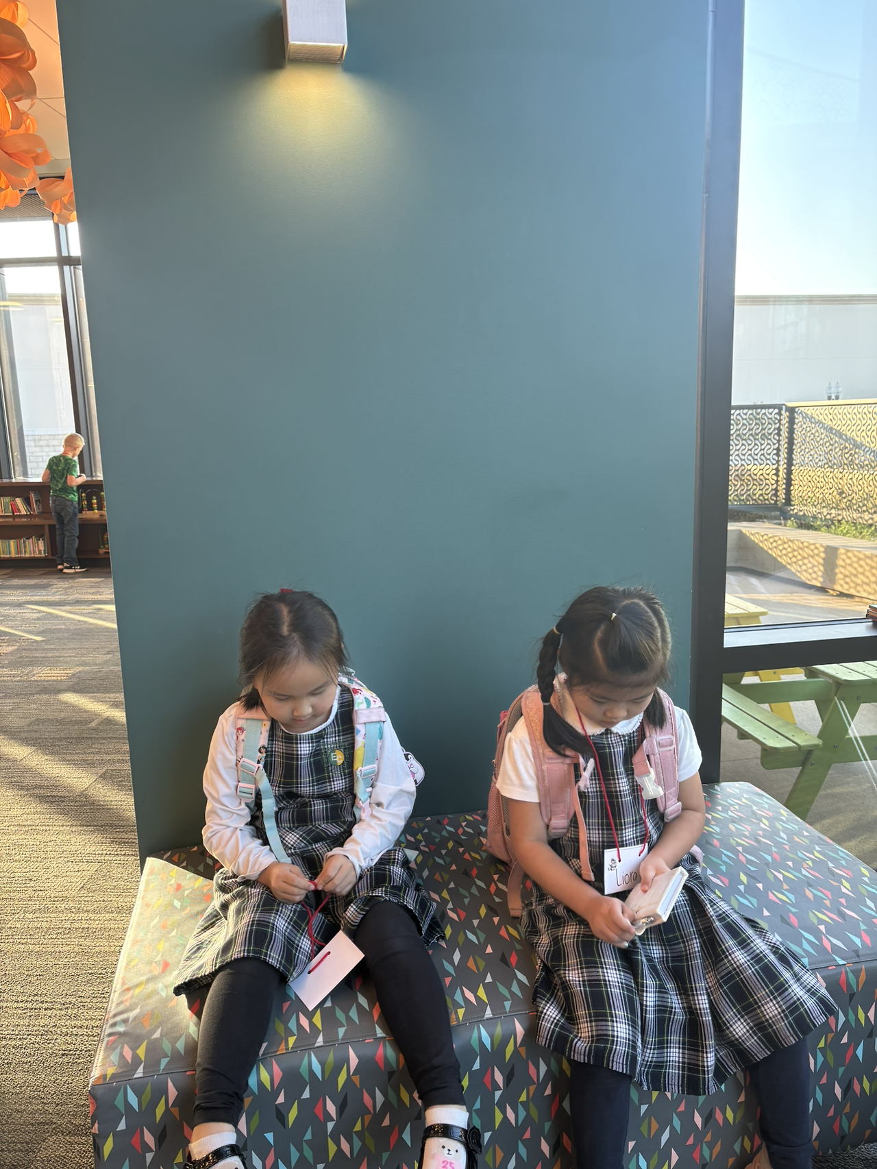 책장 사이의 검색기에서 보고 싶은 책을 찾아 입력하고, 각자 탐색을 시작한다. 재미있는 건, 매번 엘리는 동물 책을, 친구는 디즈니 책을 고른다는 점이다. 서로 취향은 달라도 책을 함께 읽고, 나란히 앉아 숙제를 하며 ‘선생님 놀이’를 하기도 한다.