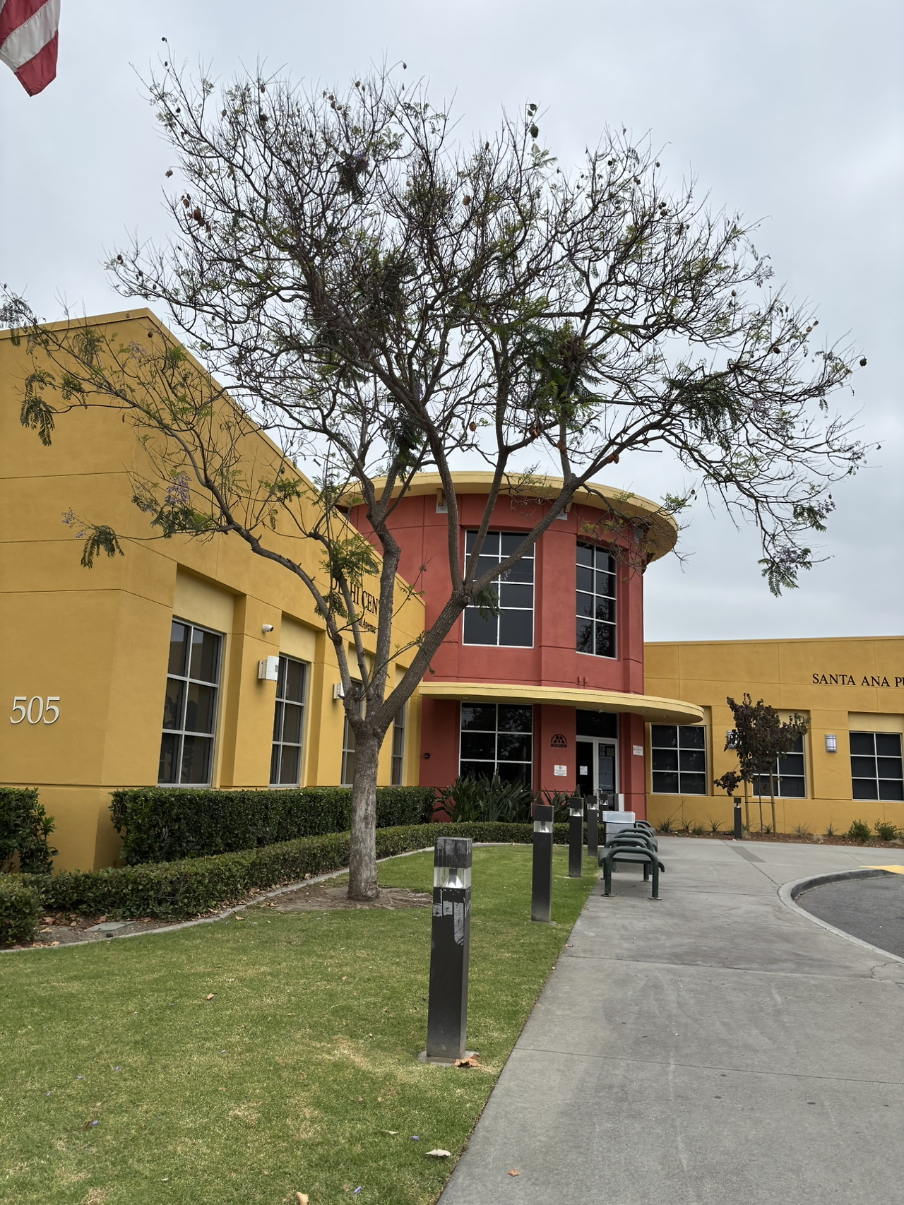 구글맵을 따라 20분쯤 달려 산타아나에 새로 생긴 도서관에 도착했다. 밖에서 보기엔 예쁘고 아기자기했지만, 주변 분위기가 심상치 않다.