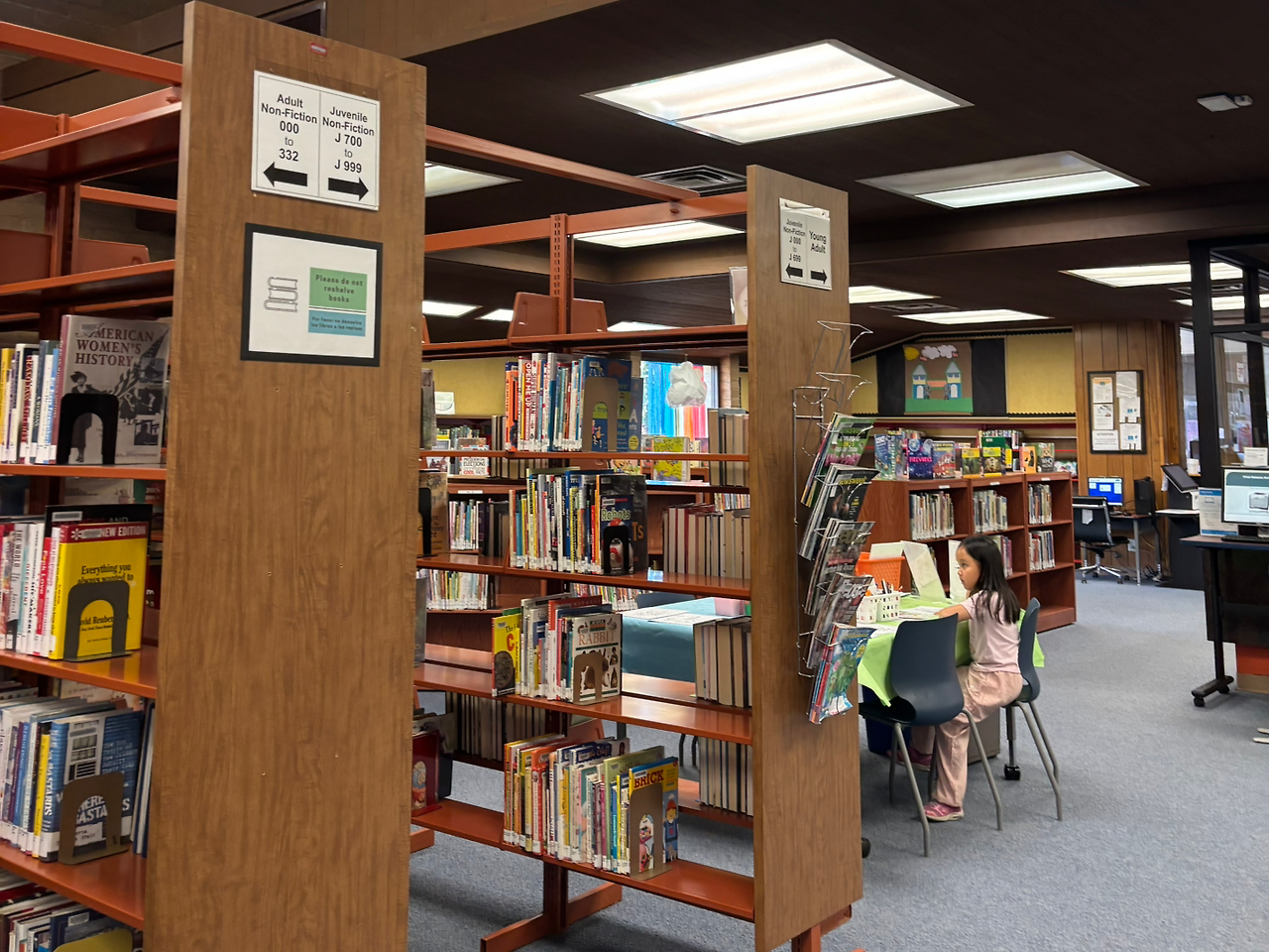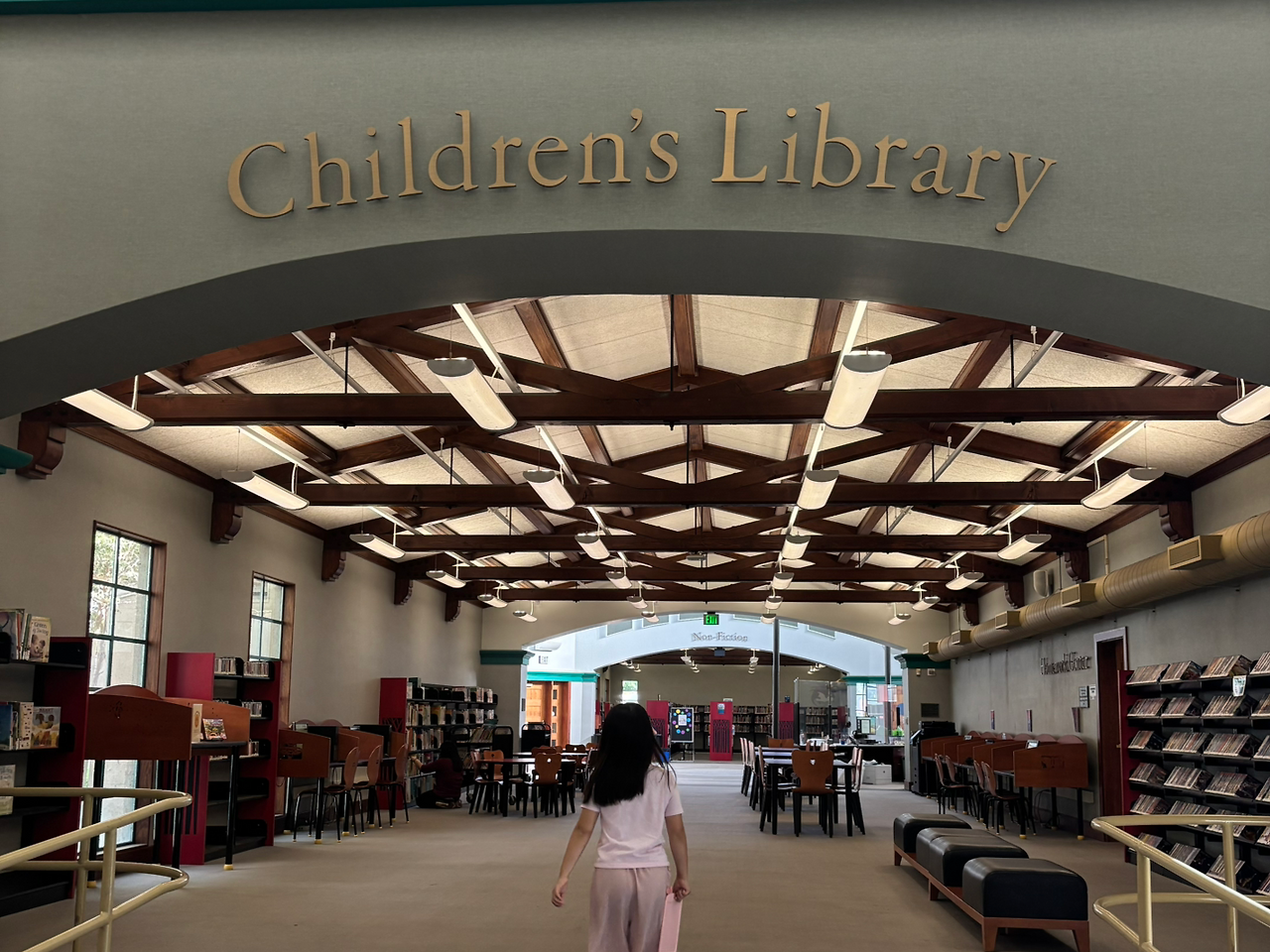 도서관 안은 먼지가 수북이 쌓인 책장 사이로 햇살이 쏟아져 묘한 분위기를 자아냈다. 우리는 바로 오른쪽에 위치한 아동 열람실로 들어섰다. 꽤 넓은 공간이었지만, 역시 오래된 책과 카펫 냄새, 그리고 먼지가 날리는 곳이었다.