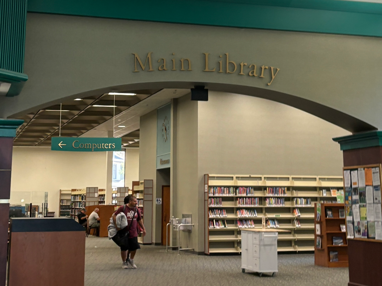 도서관 앞에 주차하고 내려서니 작은 공원 벤치와 잔디밭, 문 앞까지도 홈리스로 보이는 사람들로 가득했다. 한산했던 도시와는 달리 도서관 앞은 북적이는 모습이 아이러니하게 느껴졌다. 문 앞에 가까이 다가설수록 불쾌한 찌린내가 진동을 했다. “아… 리뷰가 안 좋았던 이유가 이거구나” 하는 생각이 단번에 들었다.