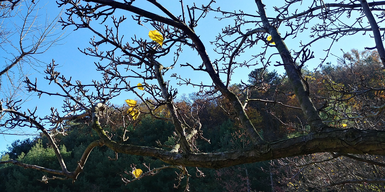 아직 메달린 노란 잎들이 거뜬한 것처럼 위엄을 뽐낸다. 살아있는 모든 것이 힘을 내고 있다.