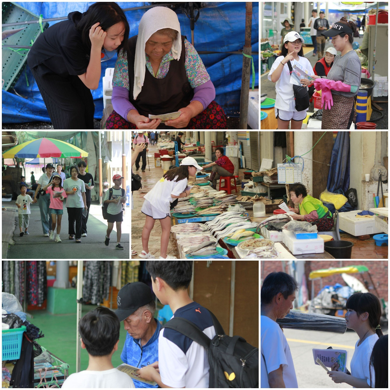 현장캠프! 이곳 사람들이 직접 살아가고 있는 생생한 삶의 현장인 5일마다 열리는 아랫시장을 돌며 ‘원래 인간은 어떤 존재이며 왜 고통 속에 살아가야 하는지’ ‘행복해지는 답은 무엇인지’ 그들이 직접 그려서 정성스럽게 만들어 온 기쁨의 소식지를 그 뙤약볕아래서 일평생 자식들을 위해 사셨던 어른들께 부끄러움을 무릅쓰고 떨리고 간절한 마음으로 전하는 친구들을 보면서 나는 저 현장이 아픔이었고 우리 부모님 세대가 처절하게 전투적으로 살아왔던 모습이 담겨있는 곳 이어서 꺼려했던 곳을 밟아주고 빛을 비춰주어 참으로 감사했다.