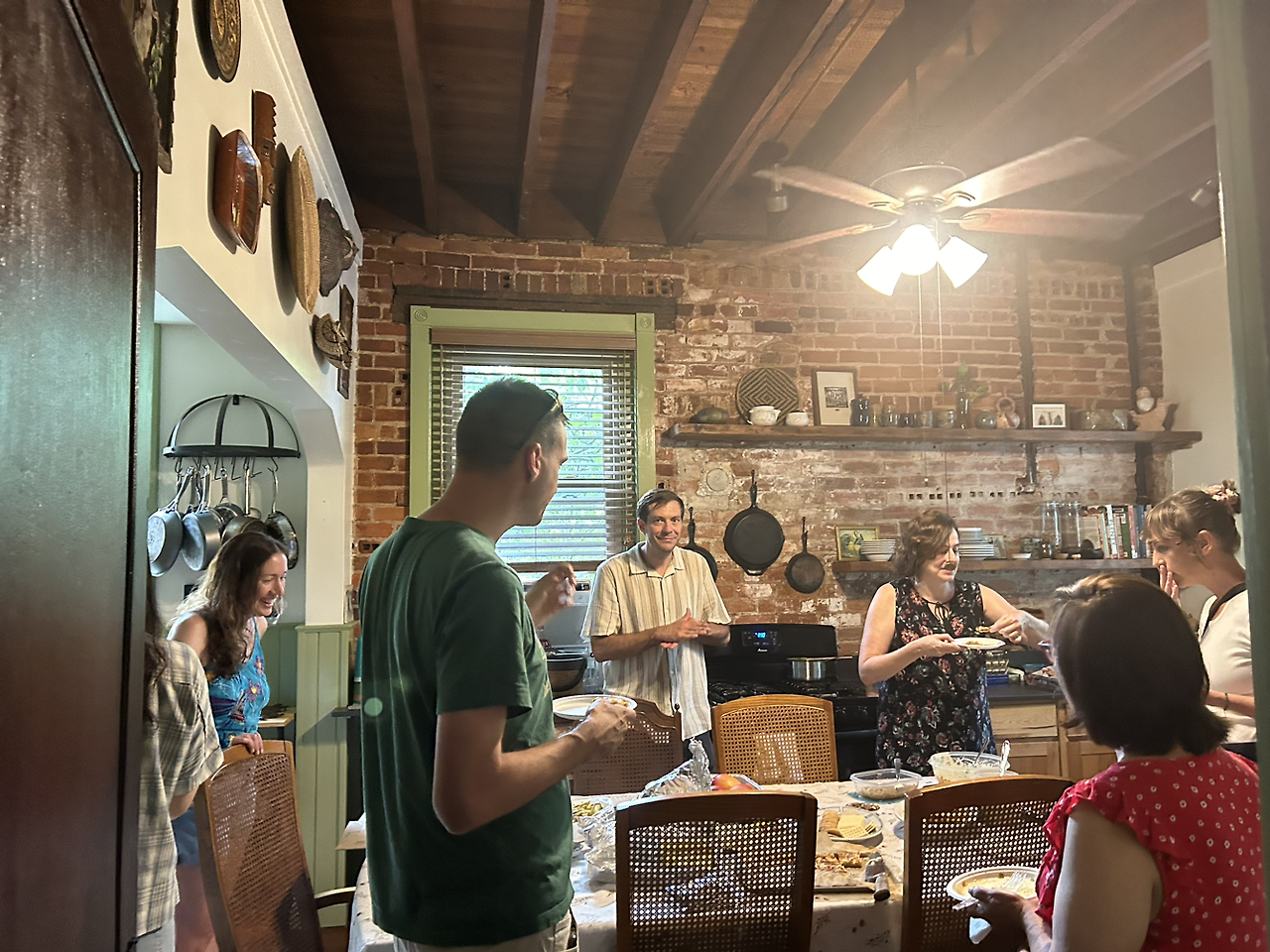 수강생들과 자신의 친구들을 집으로 바비큐 파티에