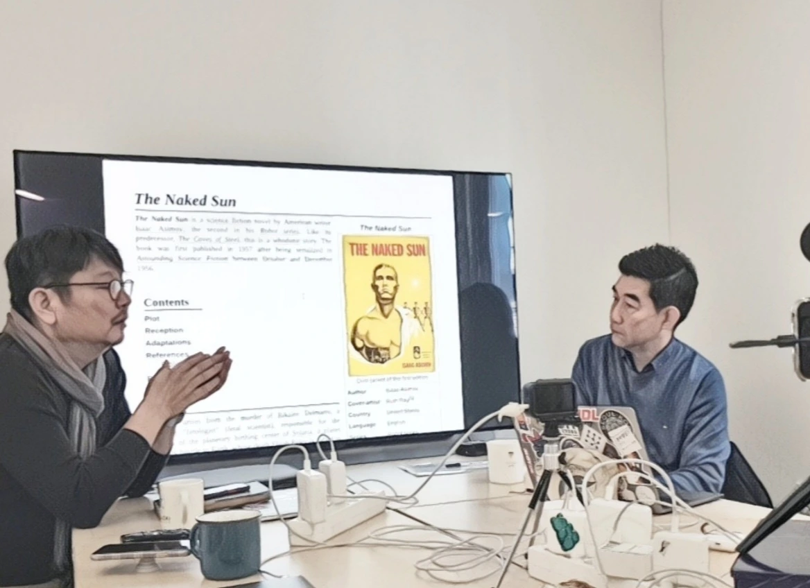 두 번째 토크의 주인공인 서울대학교 언론정보학과 이재현 교수가 1월 23일 목요일 서림동의 혼잘살 연구소에 방문했다. 이재현 교수님은 새로운 기술을 인문사회학적으로 해석해 기술의 본질과 그것이 인간과 사회에 주는 함의를 철학적으로 규명하고, 사회적 커뮤니케이션 과정에서 새로운 기술이 수행하는 매개적 기능에 대해 연구한다. 이날 우리는 이 교수와 함께 아이작 아시모프의 소설을 훑으며 미래 사회의 모습에 대한 이야기를 나누었다.