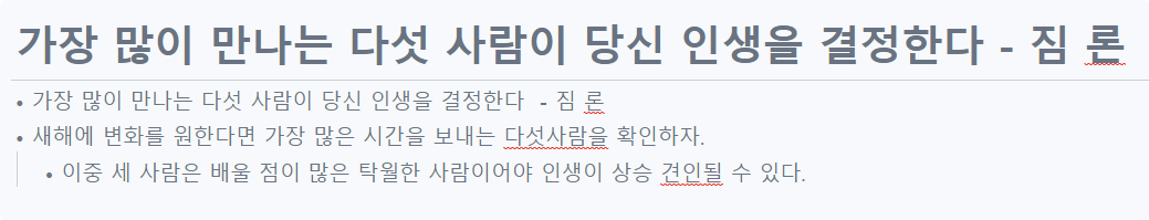 그리고 '가장 많이 만나는 다섯 사람이 당신의 인생을 결정한다'라는 짐 론의 인용문.