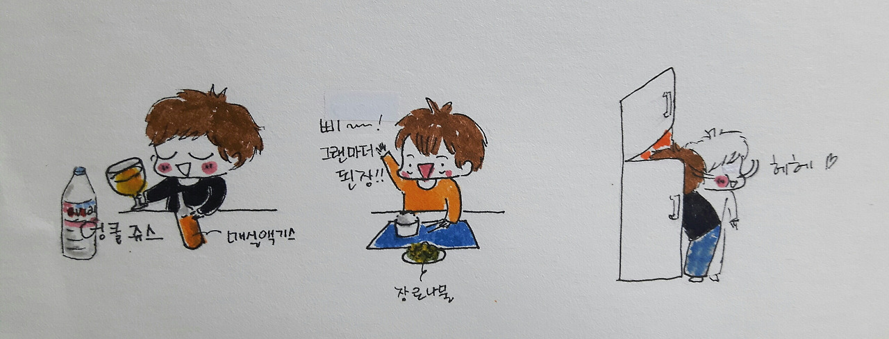 내 할머니가 만든 된장을 세계최고라고 엄지 척 들어주고, 내 삼촌이 만들어준 매실액을 바닥까지 핥아마시고 힘이 난다고 행복해 하는 남자. 그리고 내 엄마가 만들어준 오징어채를 혼자 독차지하고 몰래 꺼내먹는 이 남자를 어찌 사랑하지 않을 수 있을까?