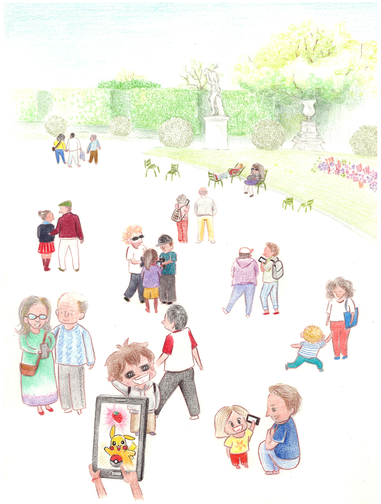 사진에 보이는 이 날은 유난히도 날씨가 좋았는데 그래서인지 나들이 나온 사람들이 많았다. 물론 절반이 훨씬 넘는 이들이 포켓몬을 잡으러 나온 듯 보였는데 그 중엔 아빠와 딸, 삼삼오오 모인 친구들, 새로 시작하는 연인, 노부부를 비롯한 수많은 관계의 사람들이 있었다.