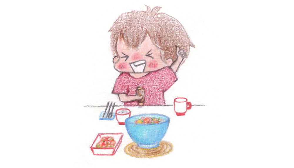 맛있는 음식과 함께 짠! 하고 맞아주는 일이