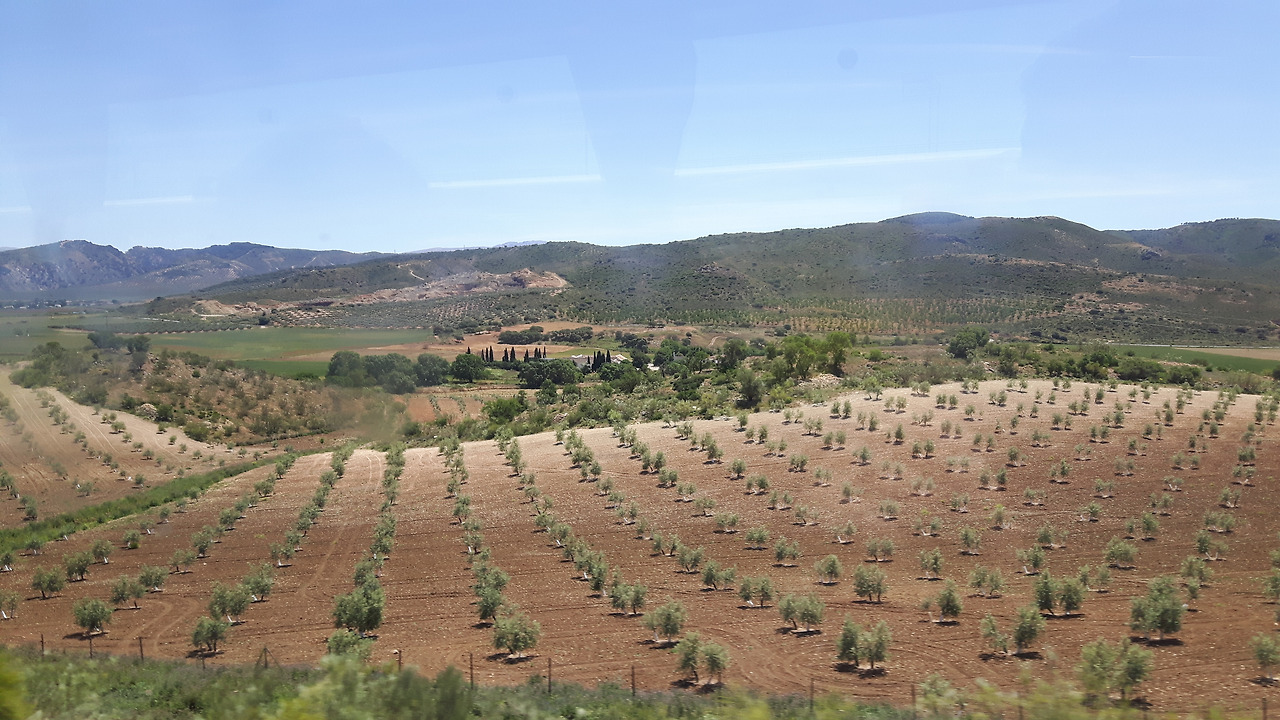 세비야에서 그라나다까지는 버스로 세 시간 거리. 버스가 달리는 동안 보이던 풍경은 아래와 같았는데 저게 다 올리브 나무라니 놀랍다.