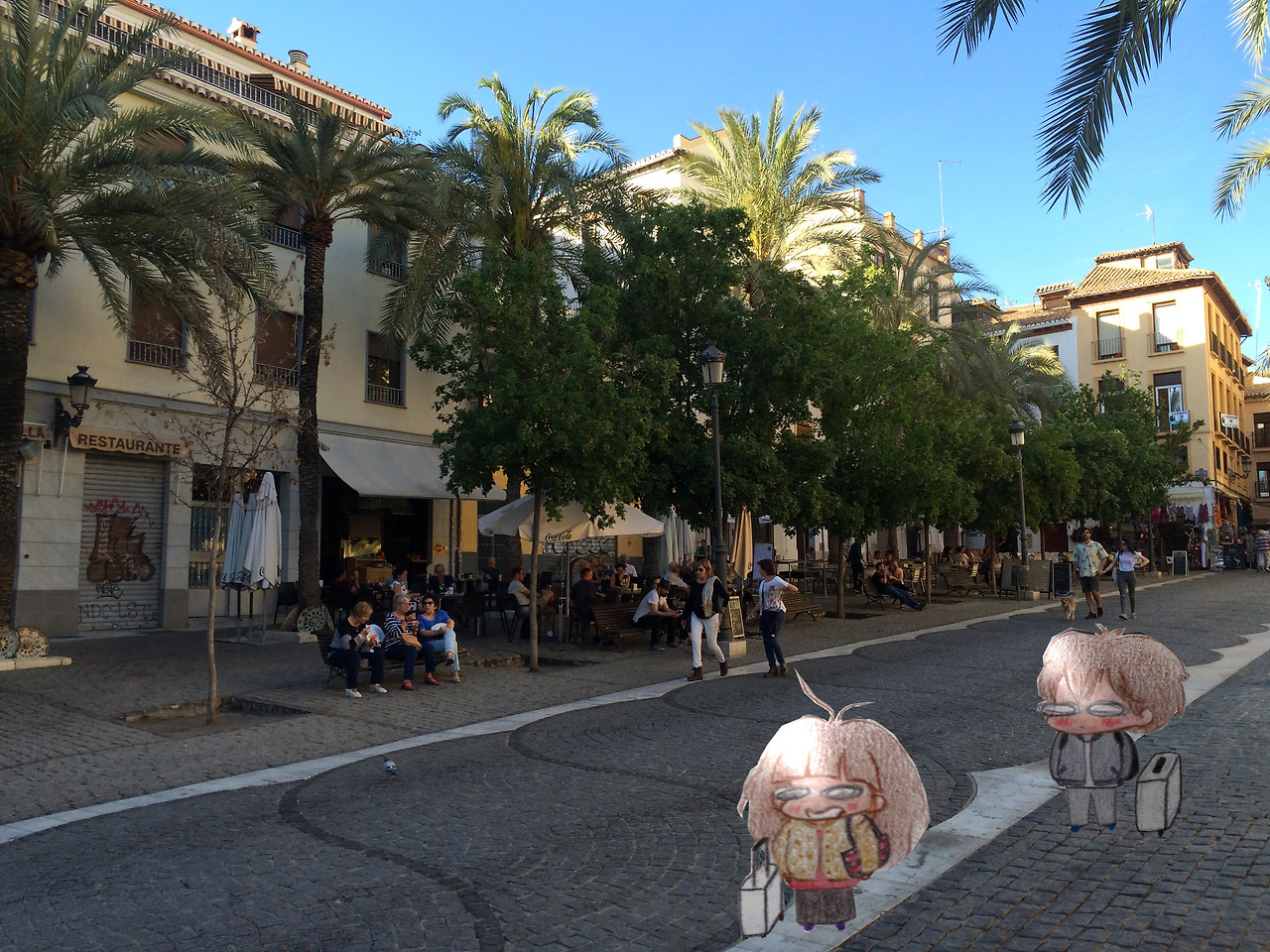 안내방송 없는 버스에서 무사히 잘 내리긴 했는데 와이파이도 뭐도 없다. 미니는 나침반 만으로 호텔을 찾기 시작했고, 돌바닥으로 된 좁은 골목길을 돌고 돌아 극적으로 우리가 예약한 호텔을 발견했다. 세상에! 파리에서 세비야는 비행기로 겨우 한시간 반 거리인데, 무리하게 첫 날에 그라나다로 직진을 해 버린 우리는 비행기-버스-버스-버스를 타고 꼬박 열 두 시간만에 호텔방에 도착했다.