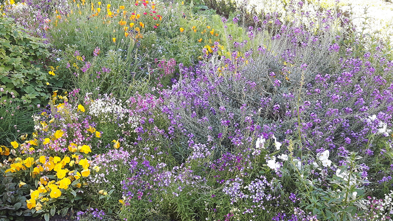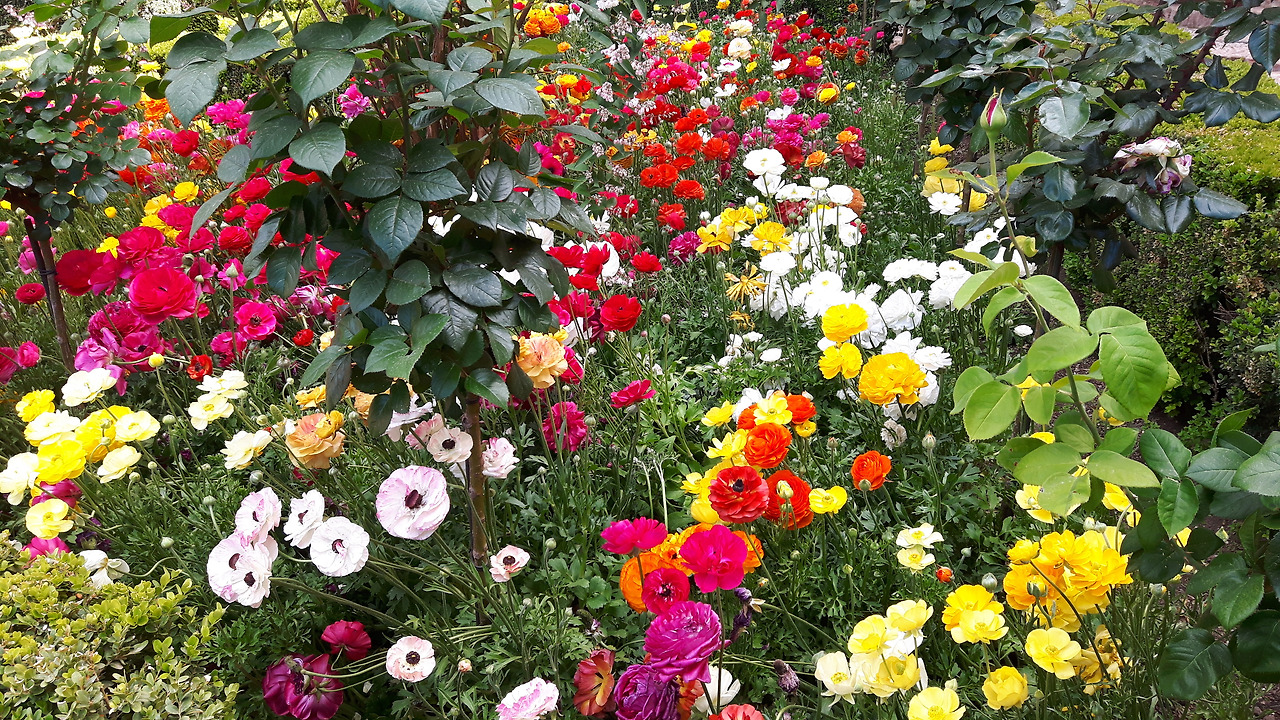 분수를 가운데 두고 흐드러지게 핀 꽃들에서 눈을 뗄 수 없었고,