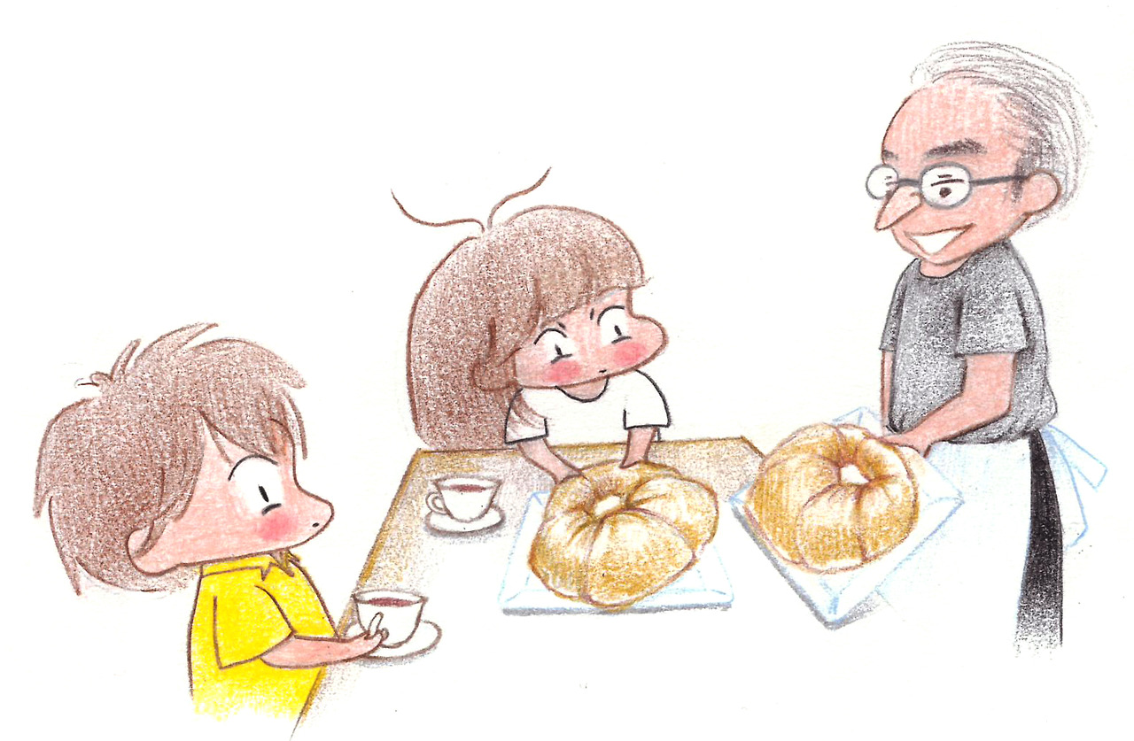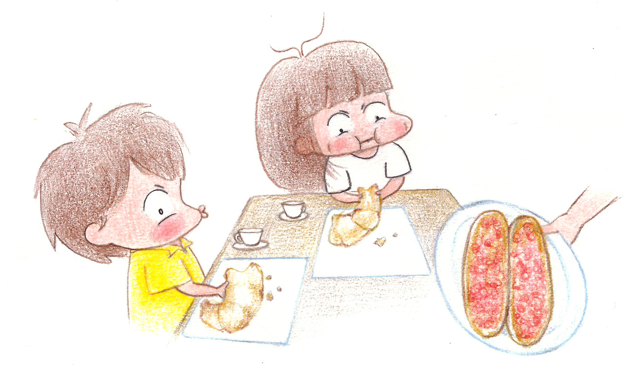종업원이 왕크로아상 한 개를 더 가져다주었다.