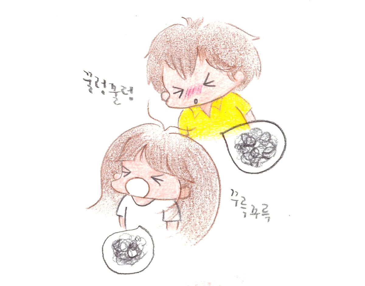 꾸룩꾸룩 꿀렁꿀렁 뱃속에 전쟁이 났다.