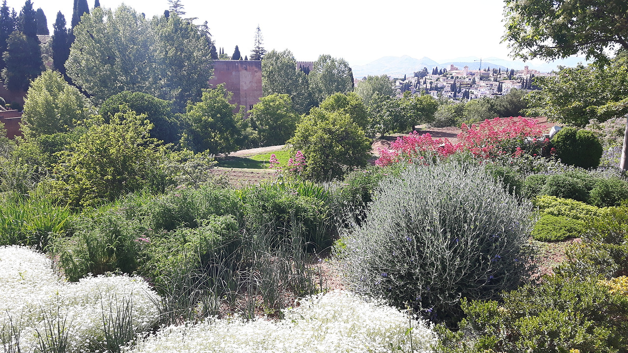 정원의 왼편으로는 오늘 열심히 걸어다녔던 알람브라 궁전의 반대편을 볼 수 있어서 이렇게 다시 한 번 눈에 담고 마음에도 담았다.