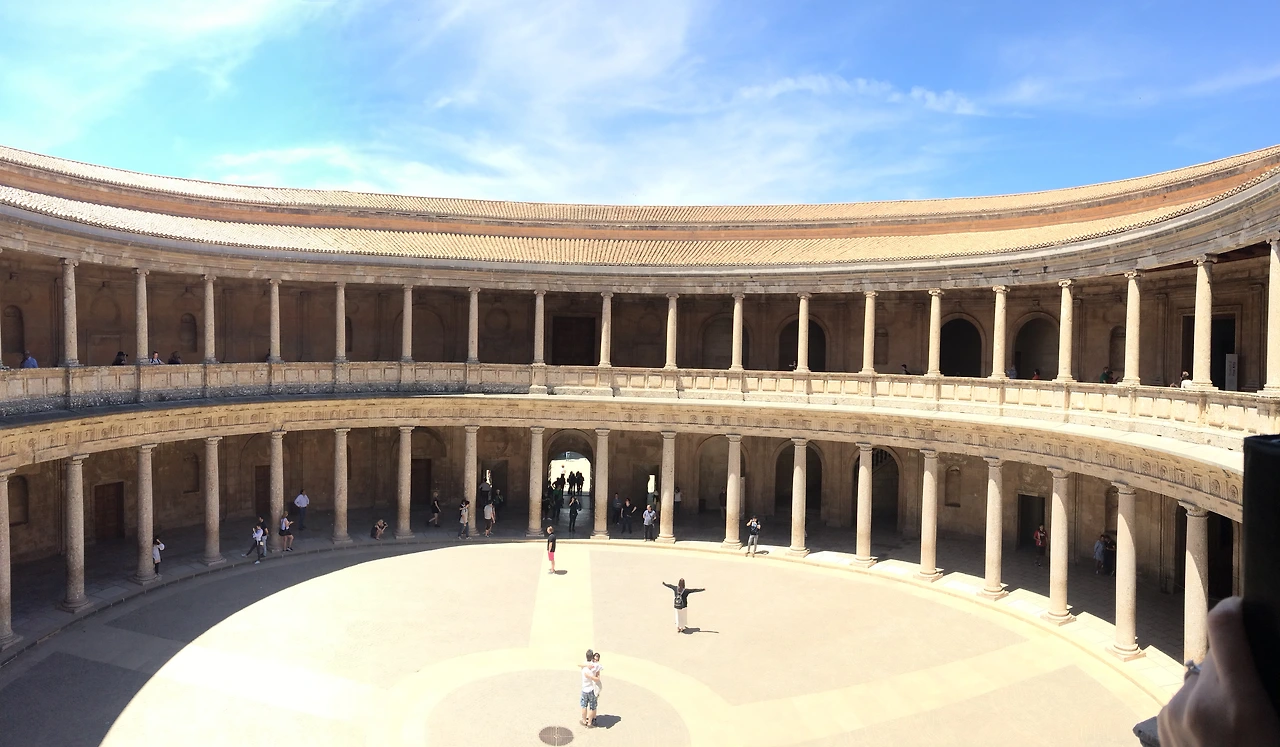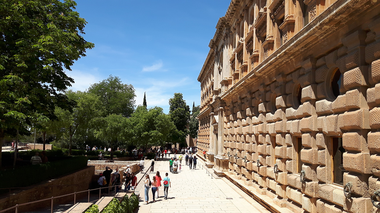 오른쪽에 지어진 큰 건물이 카를 5세 궁전인데 사진을 찍을만큼 감동적이지가 않아서 정면사진조차 없다. 이 궁전은 16세기 스페인의 카를 5세가 르네상스 양식으로 재건한 건축물인데 단독으로는 훌륭한 건축물일지 몰라도 이슬람 양식으로 가득한 알람브라 궁전내에서는 굉장히 이질감을 줬다.