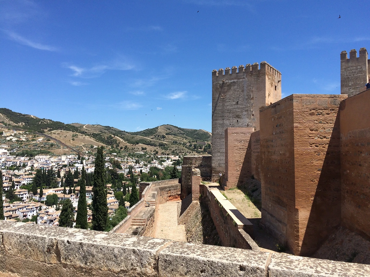 사진에서 볼 수 있듯이 알카사바는 붉은 돌로 지어진 성곽의 형태인데, 내부에는 지금은 그 터만 남아있는 병사들의 숙소, 무기고, 대장간, 목욕탕 등의 군용 시설이 자리하고 있었고 외부에는 보초를 서며 걸을 수 있는 이중 외벽과 그라나다 시내를 내려다볼 수 있는 탑들이 여전히 남아있다.