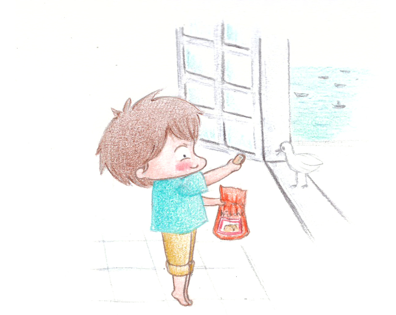 어릴 때부터 그냥 그 집 창가에 터를 잡고 산 순하디 순한 몸집 작은 갈매기. 어쩌다 브리오쉬를 한 덩이 떼어주면 기쁘게 받아먹고 다시 훨훨 날아 놀러 나간다. 우리가 외출을 하고 돌아오면 어느새 눈치채고 다가와 목을 빼고 집안을 살펴보거나 창가에 가만히 앉아 일광욕을 했다. 신기하게도 창문을 열어 두어도 절대 집안으론 들어오지 않았고 다른 갈매기들처럼 시끄럽게 울어대지도 않았다.