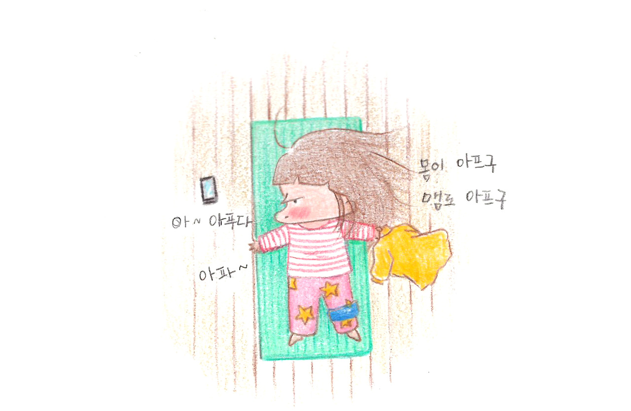 곰곰이 생각해보면 나를 배려하는 미니의 마음이 모든 것을 감내하게 해 주는 거 같다. 내가 아픈 뒤론 잉여가 된 내 몫까지 다 하느라 남편의 일과가 훨씬 더 촘촘해졌다. 하루 종일 일하고 퇴근하고 와서 저녁 준비를 도와주고 설거지를 하고 남는 시간엔 각종 행정처리에 필요한 서류들을 정리하고 가계부를 쓰거나 집안을 청소한다. 그리고 아침엔 간 밤에 씻어둔 그릇들을 정리한 후 점심에 내가 먹을 샐러드나 계란을 잘 씻어 두고 출근. 이런 미니 때문에 나는 불평할 일이 전혀 없는 복 받은 사람임에도 몸이 마음을 따라주지 않는 일상은 가진 것에 대한 감사함조차 잊게 만들었다. 웬만하면 다리를 쭉 뼈고 찜질팩과 한 몸처럼 지냈다. 외출이 불가능한 데다 테이블에 앉아서 그림 그리는 것마저 허락지 않는 몸 상태 때문에 우울함은 배가 되었고 걱정과 불안이 꽉 들어찬 내 맘을 나도 어찌할 수가 없었다.