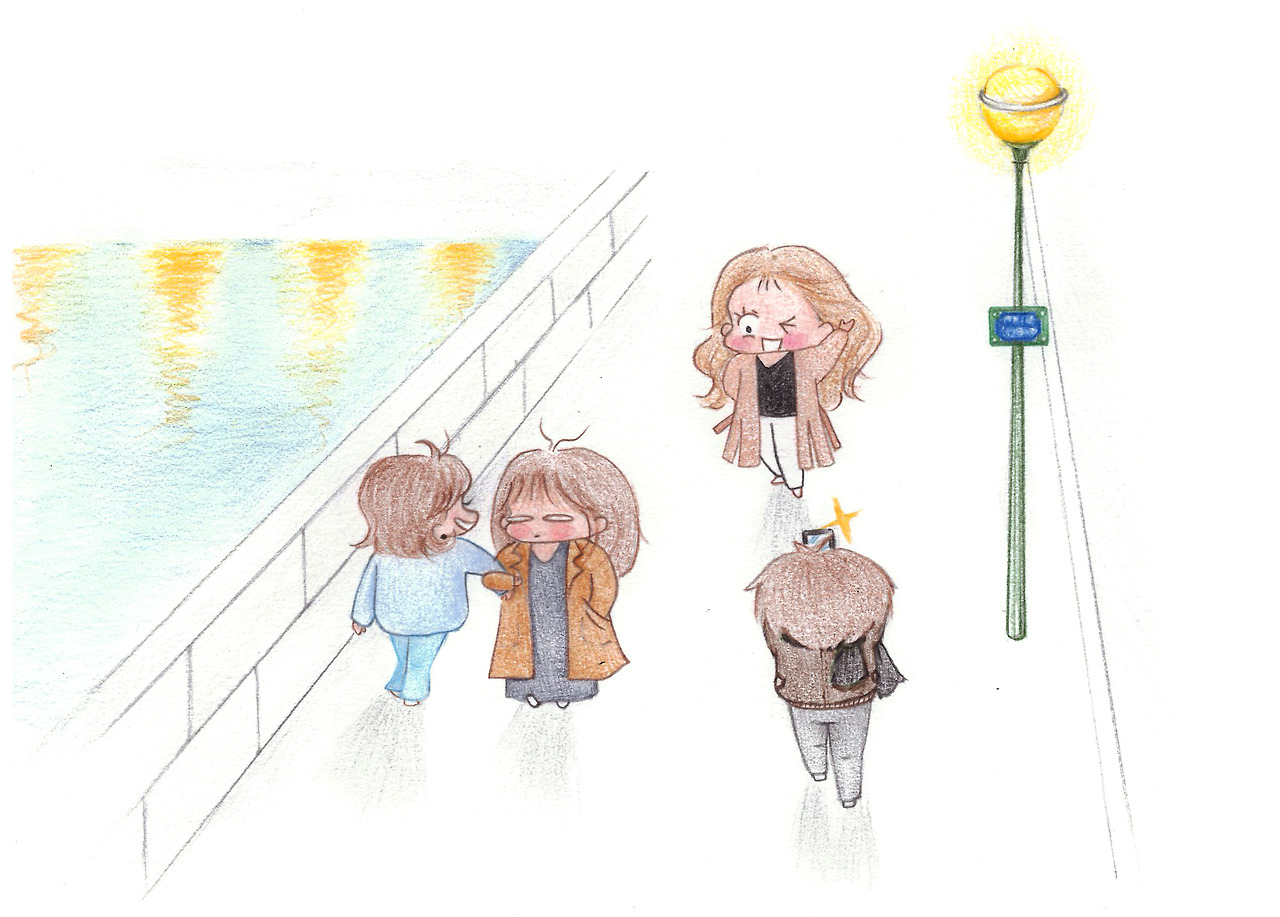 나에게 파리는 정말 아무것도 아니었다. 꼭 의미를 찾아야만 한다면 그저 미니가 태어나고 자란 곳 정도? 그런 파리를 한국에서 온 나의 가족들이 아름답다고 했다. 가끔 들르는 카페테라스, 좋아하는 레스토랑, 집 앞 슈퍼마켓, 동네 지하철역, 심지어 집 근처 골목 어귀에도 그녀들이 서려있다. 이제 가족을 생각할 때 기억 속 저 깊숙한 곳까지 손을 뻗어 한국에서의 오랜 추억들을 끄집어내지 않아도 된다. 내게 파리는 완전히 다른 의미가 되었다. 공항으로 향하던 아침, 정말 별 볼 일 없는 아파트 앞 화단에서 지하철역 앞에서 사진을 찍던 동생에게 이 곳이 특별하게 기억될 것처럼… 내게 파리도 가장 따뜻한 기억 한 조각이 되었다.