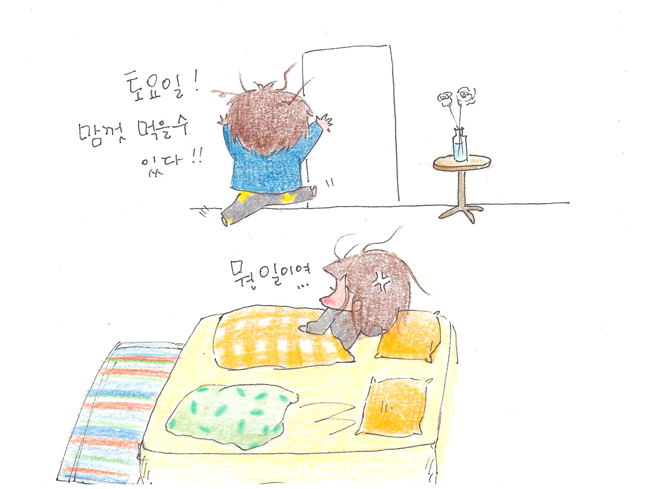 먹고싶은 음식 리스트를 작성하는 미니는 광대도 모자라 엉덩이가 실룩실룩이다.
