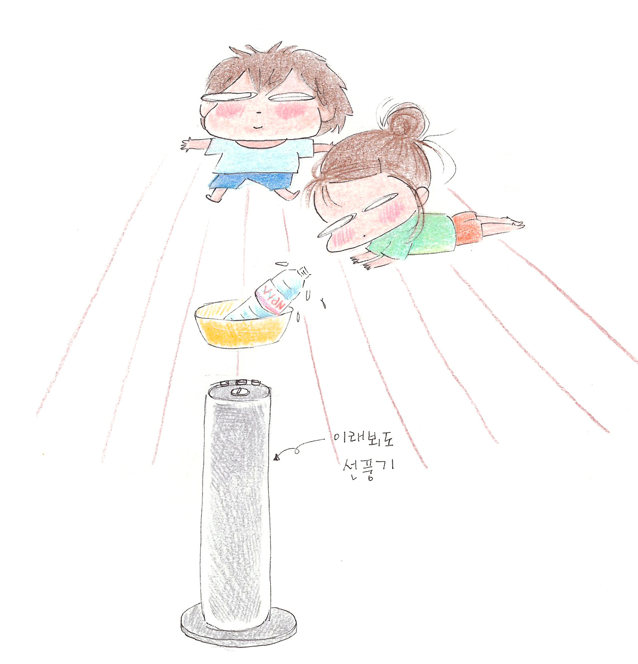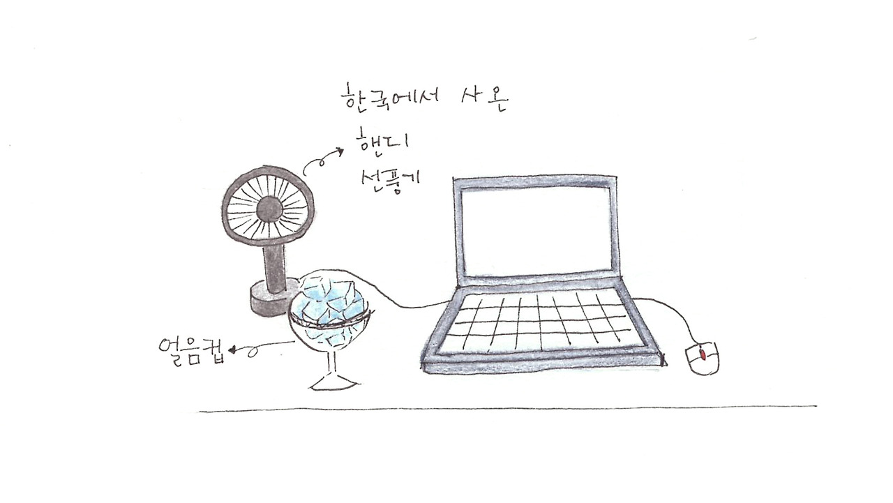 그 뜨거웠던 여름을 미니와 저는 낡은 선풍기 한 대로 버텼습니다. 조준을 잘 못하면 바람이 나오는지 조차도 모를 길쭉한 형태의 이상한 선풍기. 밤이 되면 이 선풍기마저 뜨뜻한 바람을 내뿜으니까 잠자기 전에는 미세하게나마 집안 공기의 온도를 낮춰줄 묘안이 필요했어요.