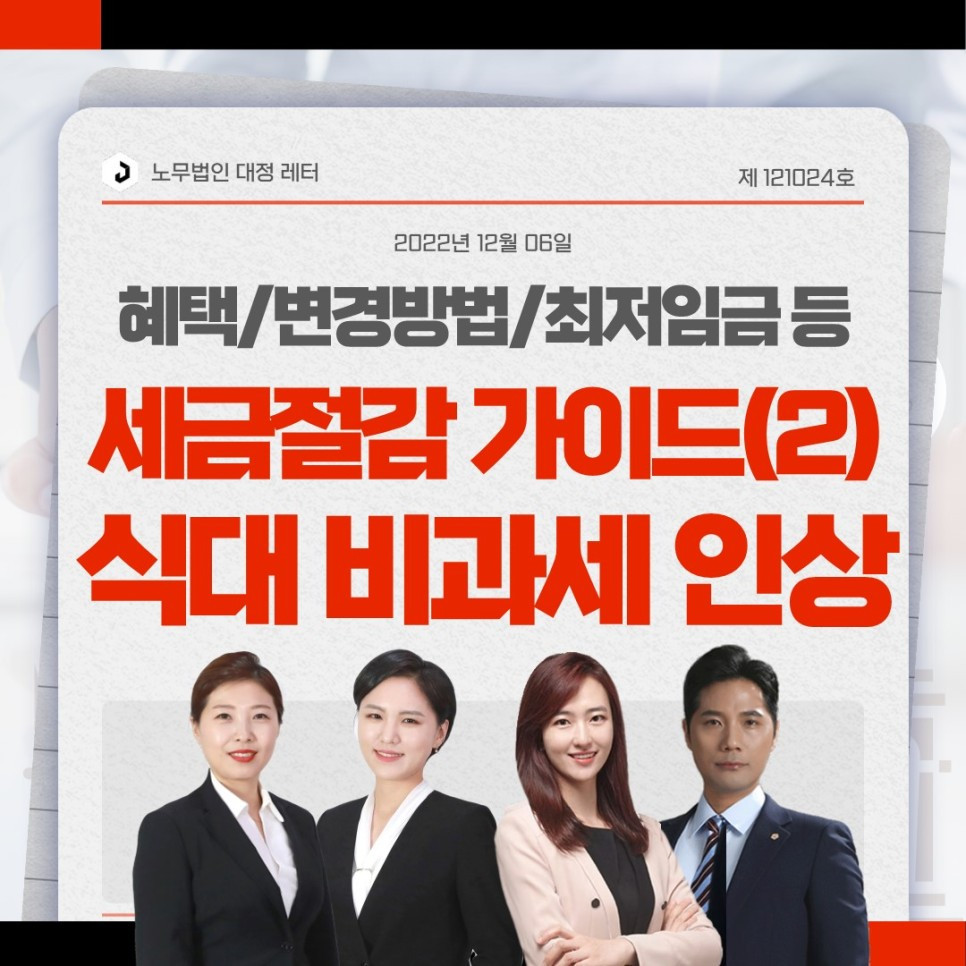 [노무법인 대정] 세금절감 가이드(2) - 식대 비과세 20만원으로 인상!