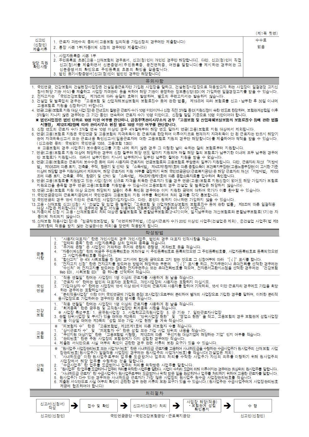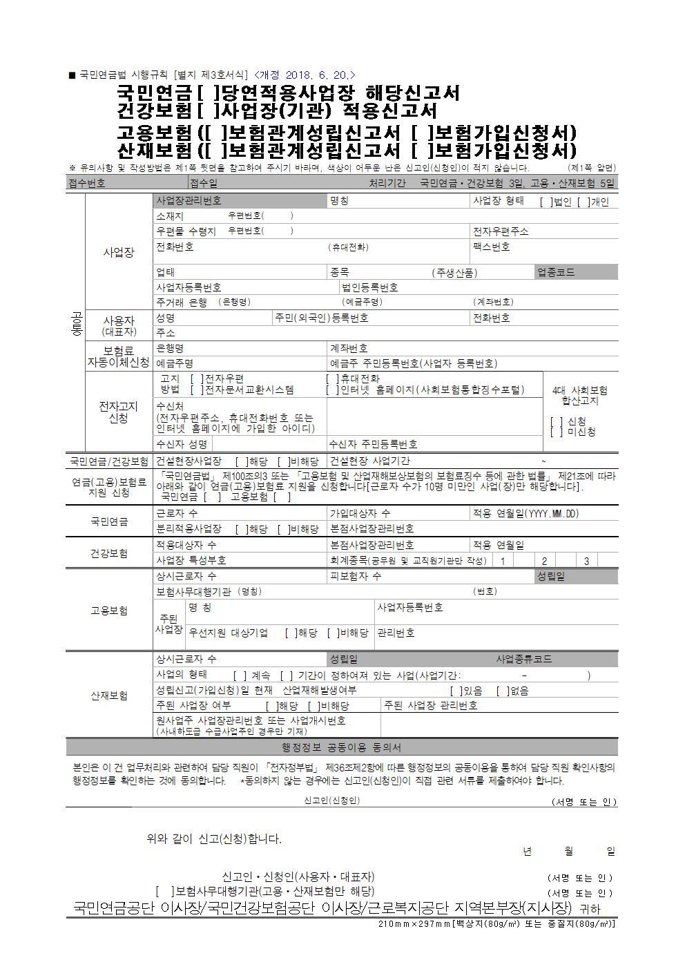 밑에 사업장적용신고할 때 사용되는 서식을 올려 놓을게. 참조하렴.