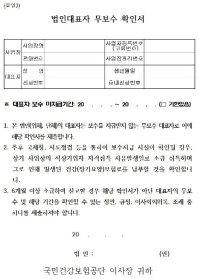 하지만, 무보수 대표이사는 건강보험 사업장 적용제외 대상이야. 원래 직장가입자로 할 필요가 없는 거지.