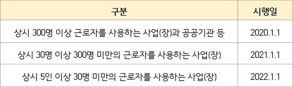 그래서 공무원의 법정공휴일을 일반 노동자에게도 유급휴일로 보장해야 한다는 내용으로 최근에 법을 개정했어. 사업장 규모에 따라서 점차적으로 법정공휴일이 일반 노동자의 유급휴일로 적용되게 된단다. 바로 밑에 시행일자를 적어놓을 테니까, 참조하렴.