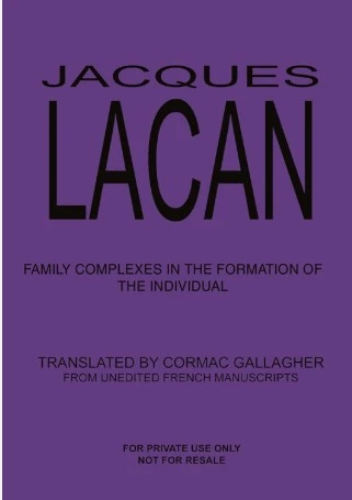 이 글은 자크 라캉이 1938년 프랑스 백과사전 『The Family Complexes』항목을 구성하기 위해 집필하였고, 영역본은 아래 텍스트를 활용하였다.
