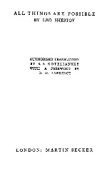 내가 관심이 있는 레프 셰스토프의 저작은 1905년에 러시아에서 출간되었고, 1920년에 D. H. Lawrence가 서문을 실은 영역판 『All things are possible」이다.