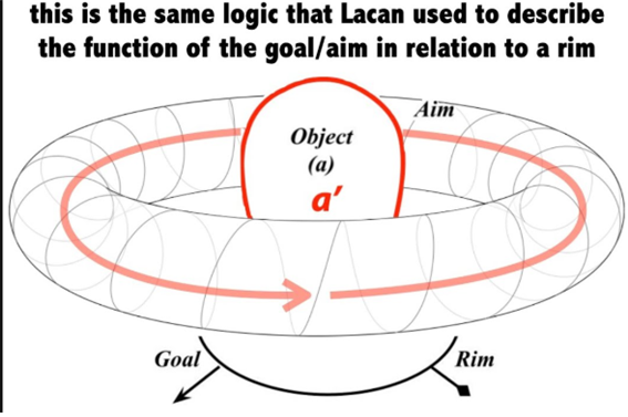 내가 알기로 라캉은 자신의 출판물에서 카프카를 언급한 적이 없지만, 그의 미공개 세미나에서 몇 가지 언급을 찾을 수 있는데, 그 중 하나가 우리의 요점과 직접적으로 관련이 있다. 라캉은 “동일시Identification”(1961/62년 세미나 IX)에 관한 세미나에서 처음으로 위상학을 상당히 길게 사용했다. 그는 torus의 '이미지'를 가지고 주체의 욕망의 문제를 위상학적 측면에서 바라보며, “주체의 욕망은 타자의 욕망이다”라는 그의 말을 두 torus, 즉 주체와 타자 사이의 통로인 소통을 확립하는 문제로 해석한다. 이를 위해서는 공간의 곡률이 내부와 외부를 연결할 수 있는 특정 위상학적 모델의 발명이 필요하다. 그는 “[주체에게] 내부와 외부라고 불리는 것에서 배제할 수 없는, 그래서 하나와 타자가 서로를 통과하고 서로를 지휘하는”(1962년 3월 21일 세션) 환원 불가능한 비유에 대해 이야기한다.