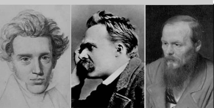 실존주의 사상은 블레즈 파스칼을 통해 19세기 또는 그 이전으로 제대로 거슬러 올라갈 수 있지만, 인간 존재의 모순을 표현한 것은 원래 성 아우구스티누스의 영향력 있는 저술에서 비롯된 것일 수 있다. 그러나 보다 인간 존재 자체의 의미에 대한 강조의 초점이 주로 표면화 된 것은 키에르케고르, 니체, 도스토옙스키의 저술이 이루어졌던 19세기에 이르러서이다. 세 사상가 모두 각자의 철학의 출발점으로 간주할 수 있는 현대적 문화의 시대에 신에 대한 질문과 장소에 주로 관심을 가졌으며, 실존 철학 자체의 시작으로 확실히 인정받았다.