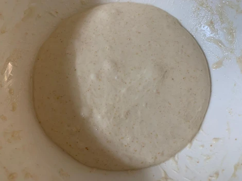 부랴부랴 반죽을 하고 르방을 넣었다. 이번에는 딱 한 덩어리가 나올 정도로 시도를 했고 냉장고에서 저온숙성을 하기보다는 상온에서 2시간 정도 최종 숙성하는 방법을 선택했다. 반죽 표면에 기포가 올라오는 모양새가 썩 만족스럽지는 않았지만 이전의 도전보다는 발효가 잘 되는 듯 보였다. 물론 내가 원한 것은 눈에 확연히 드러나는 기포였지만.