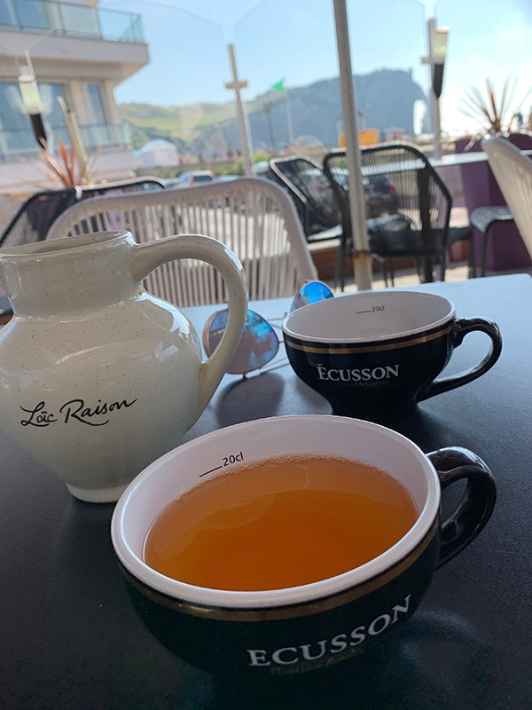 우리 부부가 함께 마셨던 최고의 애플 사이다는 작년 신혼여행 때 갔던 프랑스 북서부 노르망디(Normandie) 에트르타(Étretat)의 한 식당에서 준 것이었다. 절벽으로 가는 계단을 올라갔다가 내려오는 길이어서 상당히 덥고 지쳐있던 순간이었는데, 코끼리 바위가 보이는, 전망도 너무나 훌륭한 식당을 찾아서 고단한 몸을 앉히고 봤더니, 메뉴판에서 애플 사이다가 눈에 띄었다.