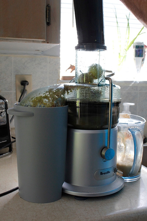 그러면 우리 집 같은 착즙기가 없는 경우는 어떻게 할까? (없는 게 당연한 물건이다!) 착즙기 대신, 가정에 있는 주서기나 녹즙기를 이용하면 된다. 그도 없다면 잘게 썰은 후, 믹서기나 도깨비방망이를 이용할 수 있고, 그것도 없다면 강판에 거칠게 갈아줘도 된다. 으깨서 주스가 나오게 하는 것이 포인트이니까.