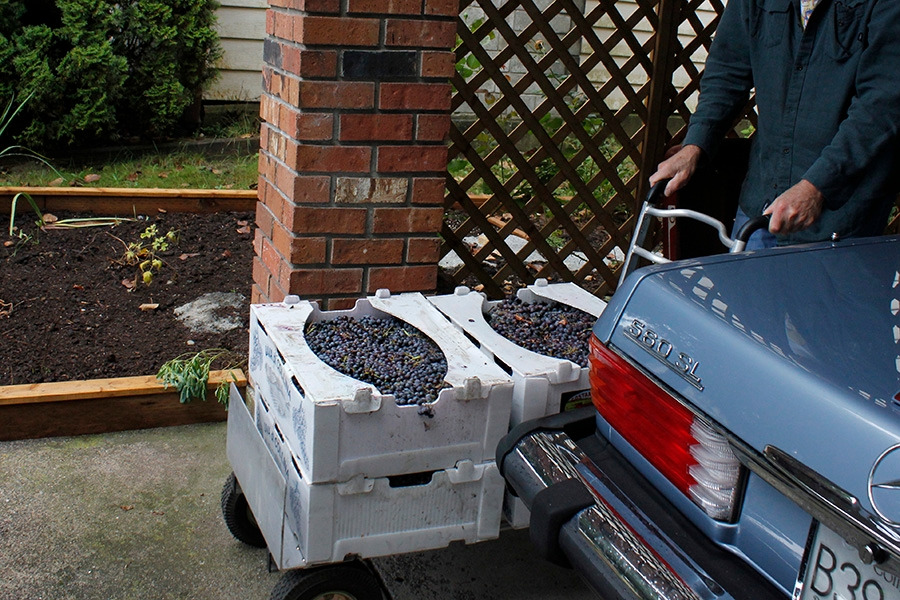 집에 돌아와서는 곧장 작업에 돌입했다. 포도는 정말 쉽게 상하기 때문에 빨리 시작해야 한다. 그래서 부지런히 차에서 내려서 뒤뜰로 데려갔다. 이렇게 두 번에 나눠서 옮겨야지, 무거워서 한꺼번에 싣지도 못하겠다.